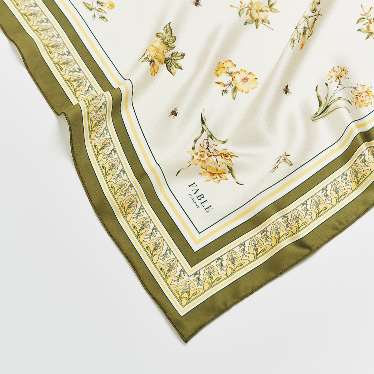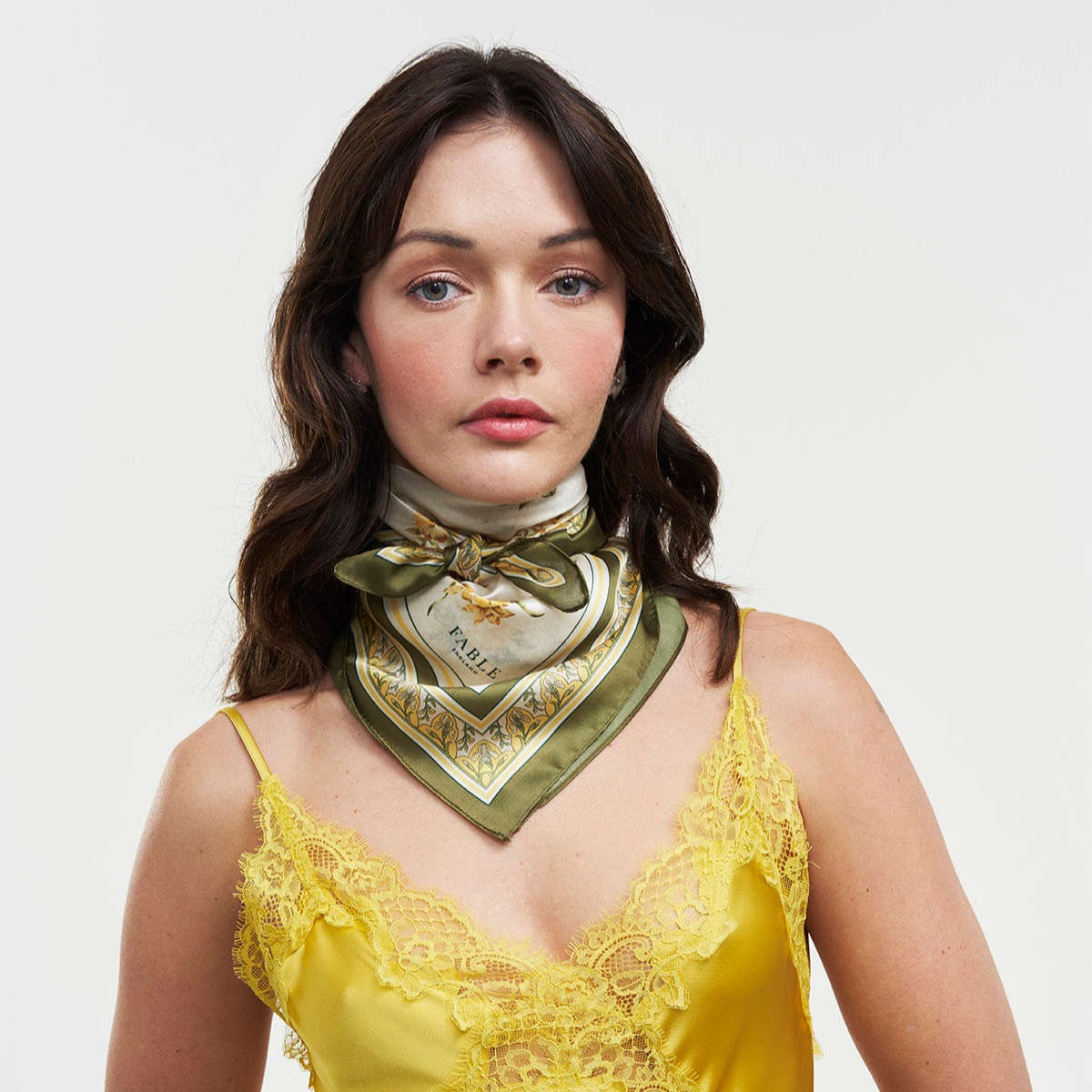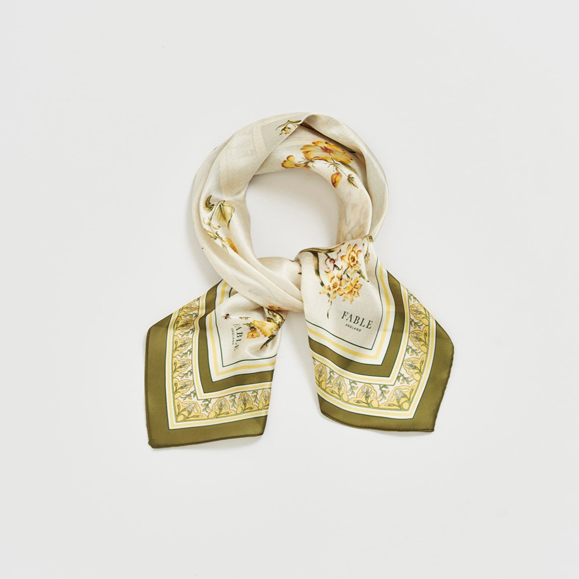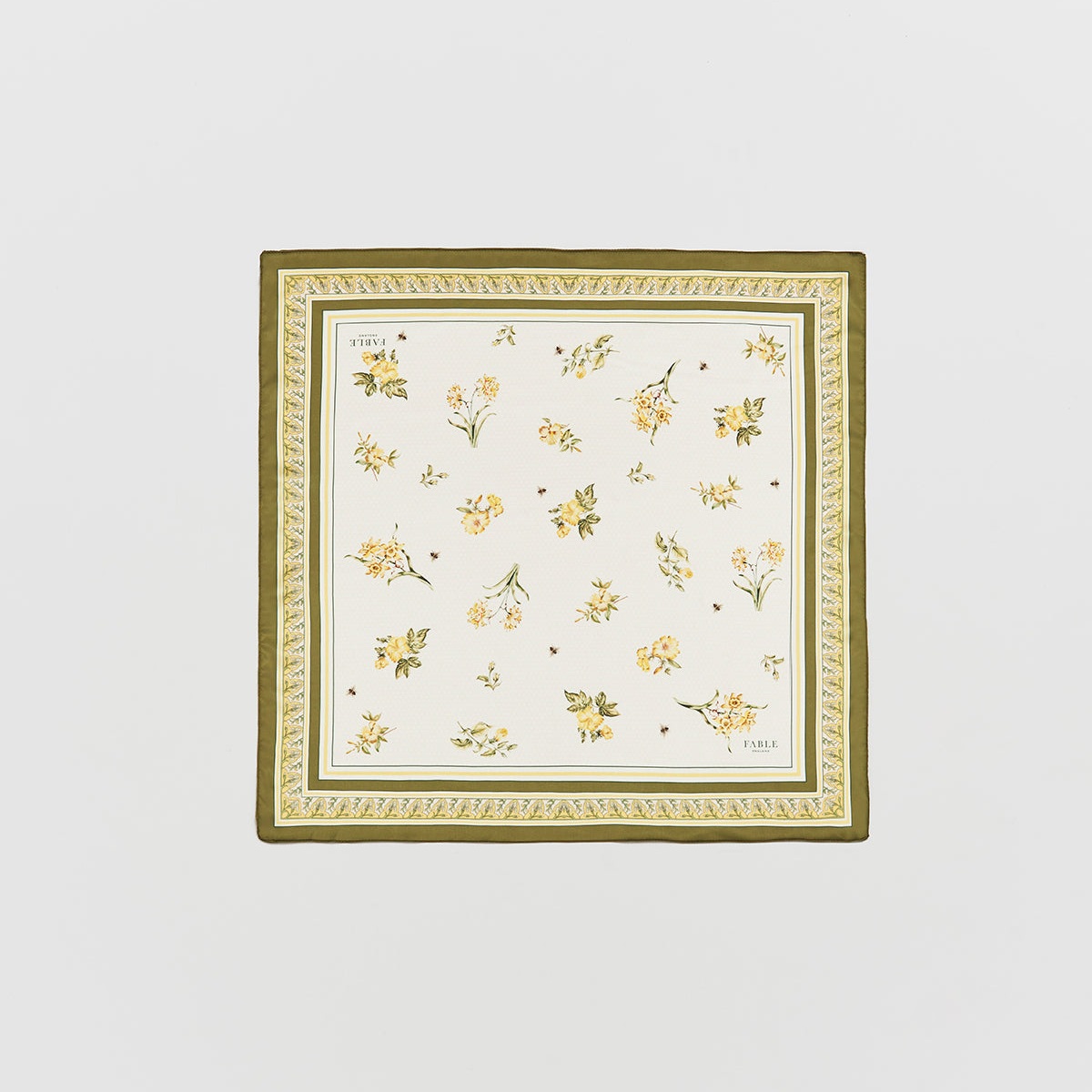 輕盈布料搭配絲滑手感,親膚柔軟、垂墜自然。明亮黃色結合優雅花卉圖騰,為整體造型增添清新氣息。方巾設計靈活多變,可繫於頸間、髮間或包包上,日常穿搭輕鬆點出細緻質感。