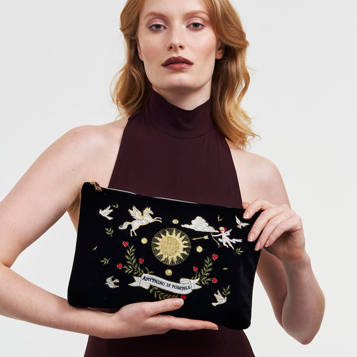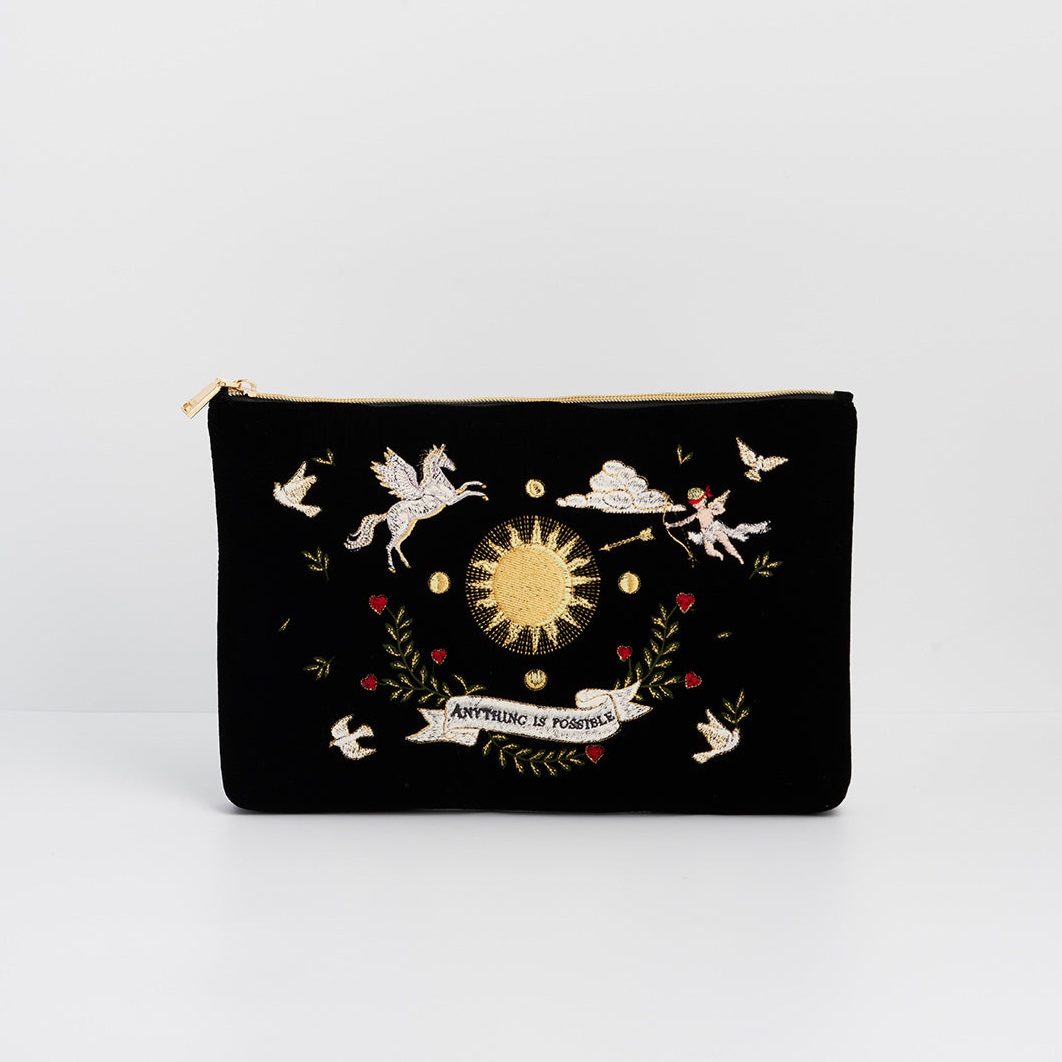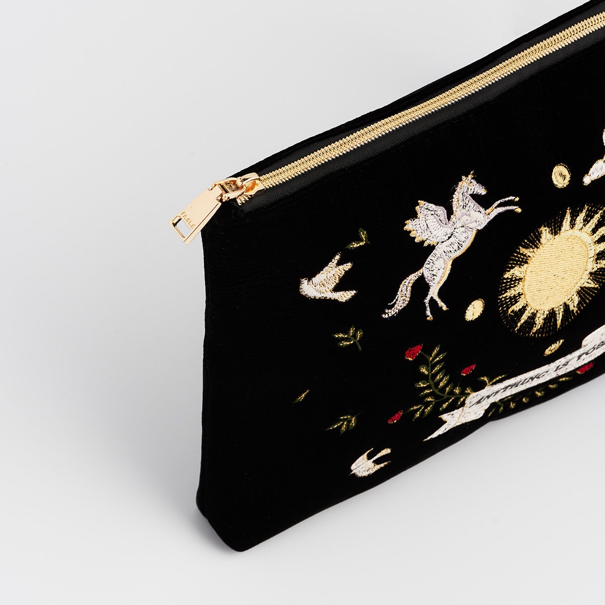 低調又吸睛的優雅質感。柔軟天鵝絨材質,搭配細緻星空刺繡,為日常小物增添一抹浪漫氛圍。扁平輕巧設計,無論收納隨身配件或旅行小物都相當方便,拉鍊開口設計,安心收納不易滑落。