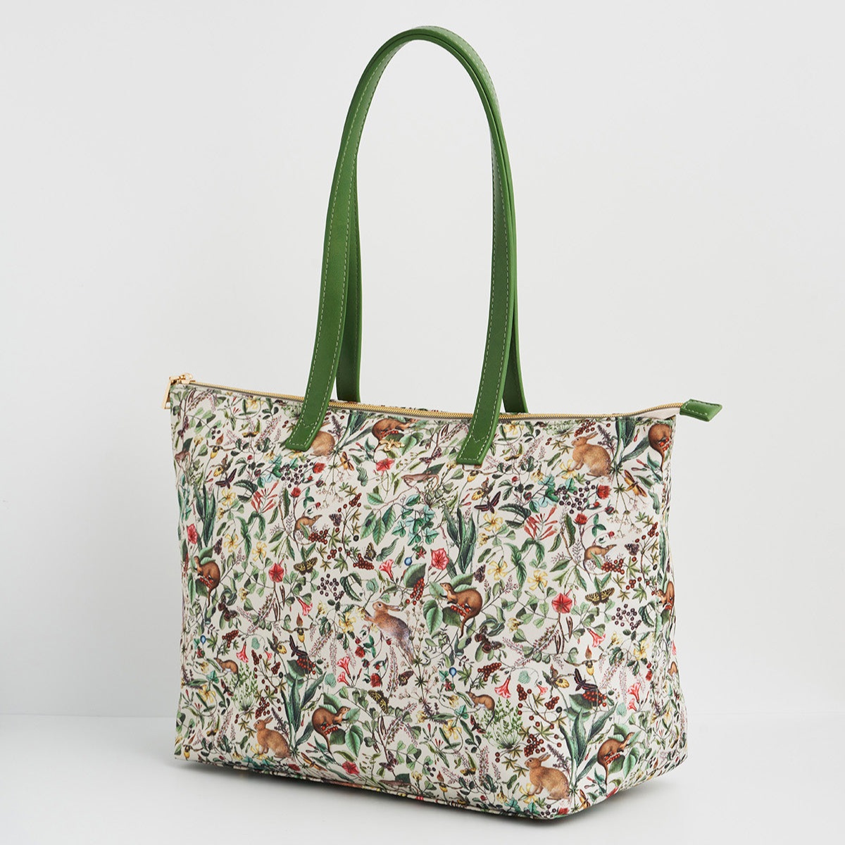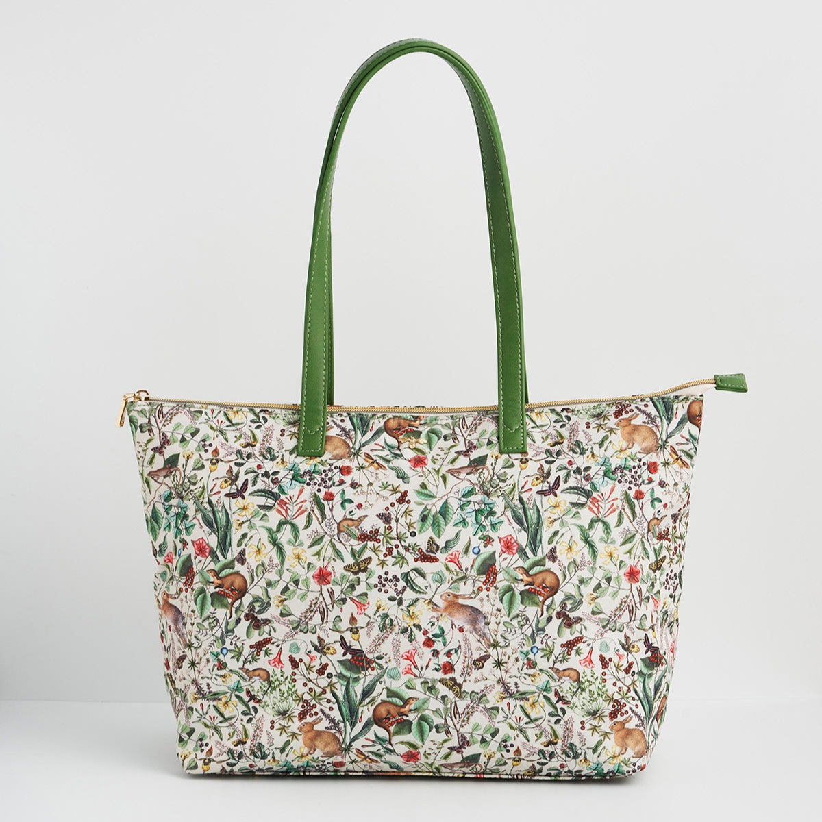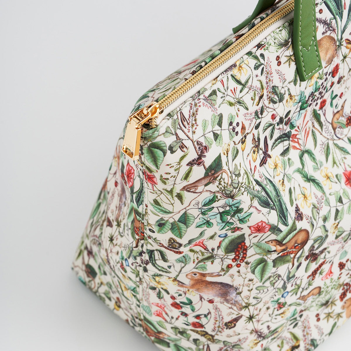 清新又帶點柔和氣質的花園印花托特包,是日常外出的理想選擇。以耐用綠色布料製成,搭配細緻花卉圖案,展現輕盈優雅的風格。包內空間寬敞,可輕鬆收納日常所需物品;結構挺立、提把舒適,無論通勤、出門採買或週末小旅行,都能自在使用。